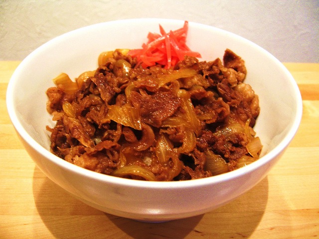 - どんぶりにご飯と1を入れ、紅生姜を添えて出来上がり!