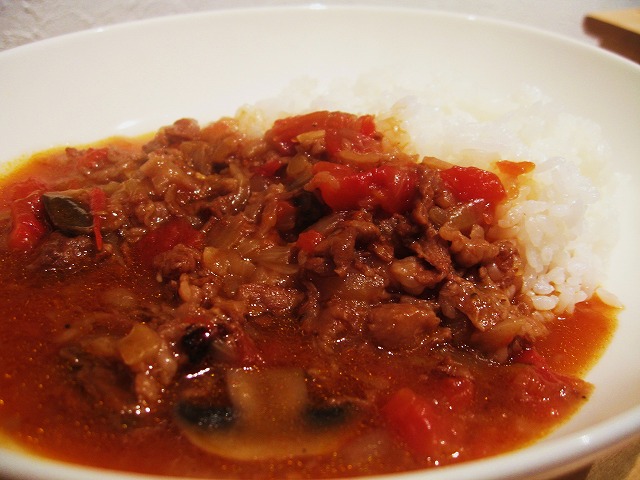 - 1にトマト缶、水、ブイヨン、ケチャップ、ウスターソース、醤油を入れて弱火で20分ほど煮込んで出来上がり。